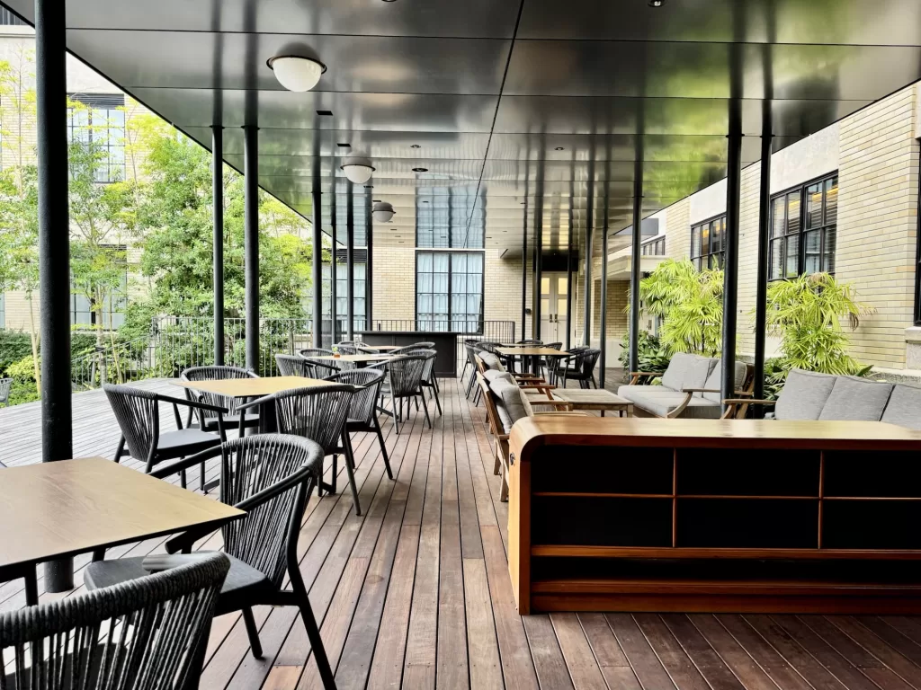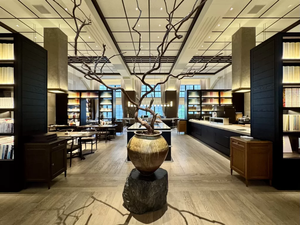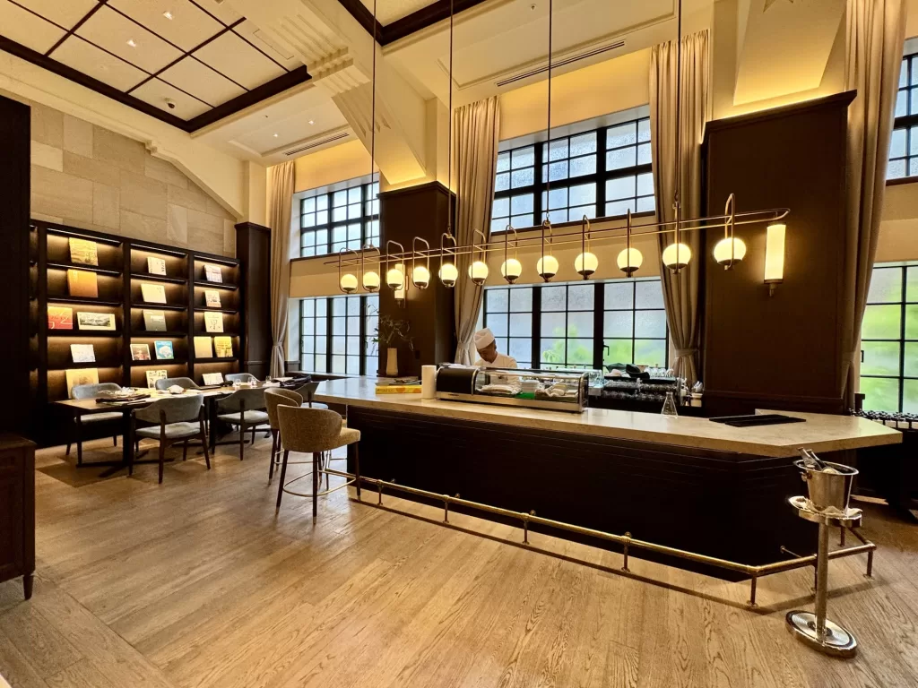 今回は、その敷地内にある「ザ・ホテル青龍 京都清水」の宿泊者専用エリアに設けられたレストラン・ライブラリーを訪れる。
