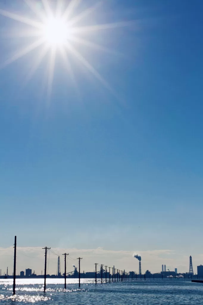象徴的だった海中電柱は安全上の理由で姿を消したが、この海岸が見せる一瞬の静けさと光の情景は、今も人々の心に残り続けている。