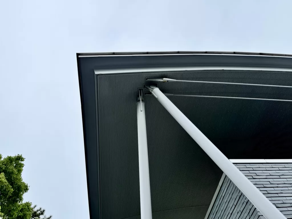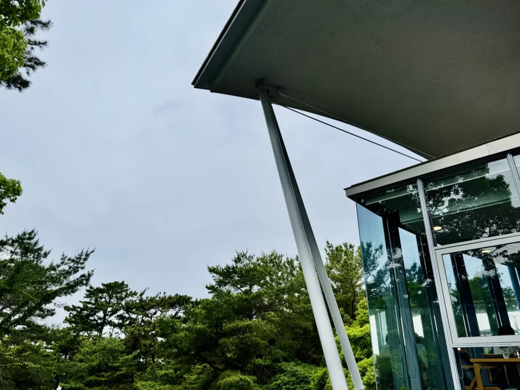 特徴的な湘南らしい軽やかな屋根や可動ルーバーによる自然光を取り入れる仕組みが設けられている。これは「美術館は自然光の下でこそ輝く」という考えに基づいているのだという。