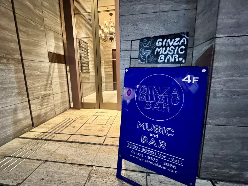 GINZA SIXのメイン通りから道をひとつ入ってすぐの場所に構える銀座ミュージックバー。(Ginza Music Bar)東京銀座で唯一本格的に音楽を聴かせるバーだという。