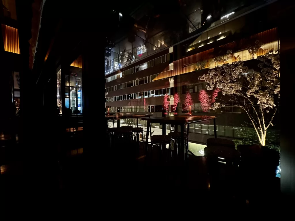 3階と低層ながら、並木通りに連ねる路面店のネオンよりも視線が高いのであまり気にならない。十分リラックスして過ごすことができる。