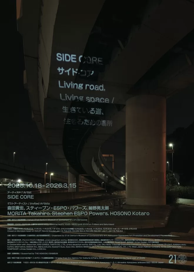 アートチームSIDE COREはこれまで東京を活動の舞台としながら、日本各地でもプロジェクトを展開してきました。そうした実践の背景には、2011年の東日本大震災を契機に実感した「都市はあらゆる側面で他の地域に依存して成り立っている」という気づきがあります。彼らはストリートカルチャーを「都市の公共空間における表現」にとどめるのではなく、「道=異なる場所や価値観を媒介するもの」として再定義してきました。つまり、ストリートカルチャーを、都市の路上に閉じた表現ではなく、地域と地域をつなぎ、移動や文化の連鎖反応に基づく表現運動として捉え直すことを試みています。